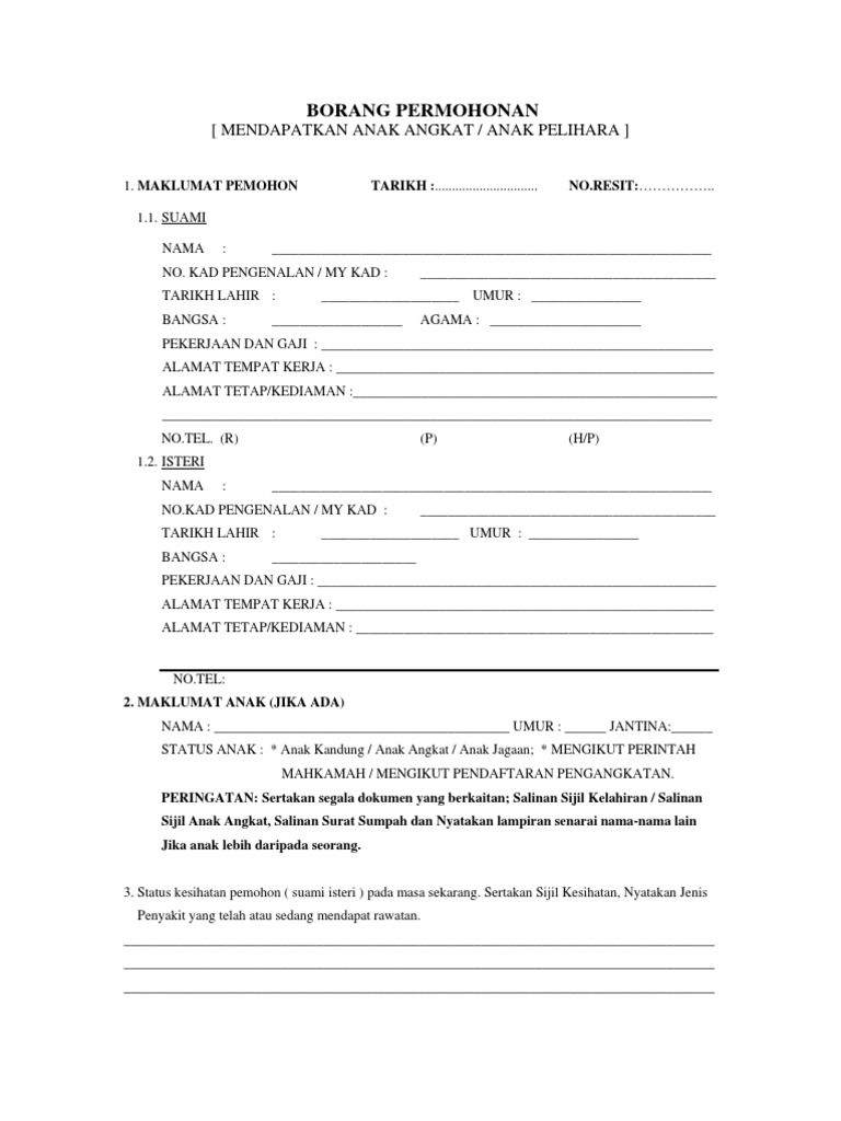 Borang permohonan pengeluaran dokumen. Mulakan dengan surat LANGKAH 1. Dalam jagaan ibu bapa angkat sekurang.